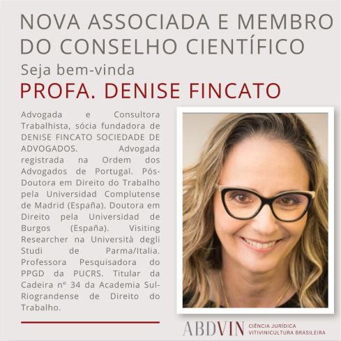 A Profa. Denise Fincato agora integra o Conselho Científico da ABDVIN – Ciência Jurídica Vitivinicultura Brasileira.